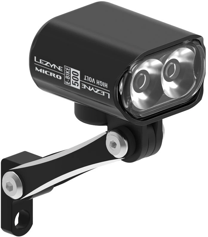 Bright and efficient multi-purpose e-bike cycling light. Durable, heat-dissipating CNC machined aluminum construction. Two ultrahigh-output LEDs deliver up to 500 lumens. Enhanced MOR (Maximum Optical Reflection) lens with built-in side visibility. Intelligent Auto Day/Night dim mode. E-bike compatible 6 – 12v input, 6w easily plugs into batteries from top makers including Bosch, Shimano and Yamaha. Includes CNC fork mount and 140cm long power cable.