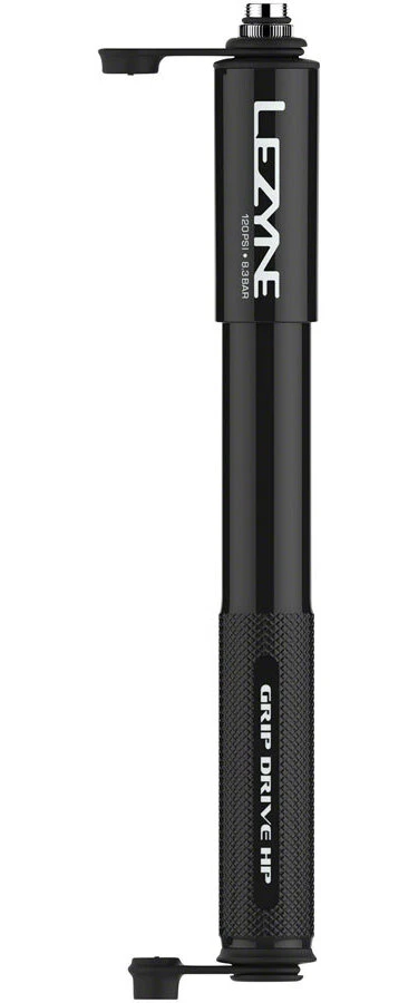 Compact and super efficient high pressure bicycle hand pump featuring a knurled barrel for superior grip while pumping. Its proven engineered design with an overlapping handle is constructed from machined aluminum, providing superior durability, minimal weight and all of the style. The integrated ABS Flex Hose is presta and shrader valve compatible, and greatly improves pumping action and ergonomics. This mini pump is completely rebuildable and made with the best materials available. With up to 120 PSI (8.3 BAR) of pumping power, the Grip Drive HP is excellent for all high-pressure bicycle tire applications.