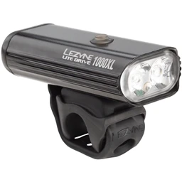 Lezyne Lite Drive 1000XL front light has up to 1000 lumens of output. Its machined aluminum body with cooling fins is lightweight and super rugged. MOR (Maximum Optical Reflection) lens, light output is optimized and evenly dispersed. And its versatile strap securely mounts to variety of bar shapes and sizes. Remote Switch compatible Run time: 1:30 – 87 hrs. Max lumens: 1000 Item SpecificationsLumens Front: 1000Weight: 153