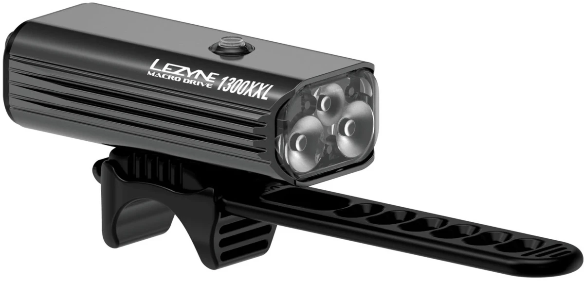 The Macro Drive 1300XXL is a new high-powered LED cycling light offering up to 1,300 lumens of output. It features our Tri-Focus optics, which creates a brighter center spot in a large wide-angle pattern. Itβs constructed from machined aluminum and has cooling fins that optimize performance. The light is micro-USB rechargeable and it can run for up to a massive 148 hours on a full charge. A versatile strap secures it to a variety of handlebar sizes, and the 1300XXL is Remote Switch compatible.