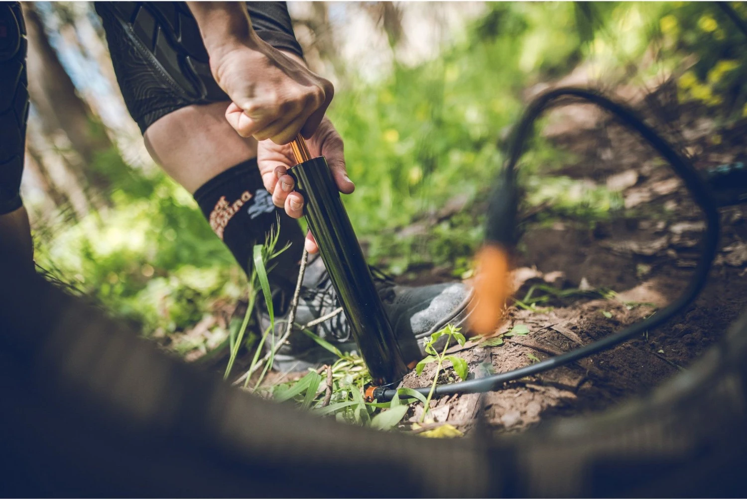 The Micro Floor Drive XL is a portable hand pump with foot pump capabilities, developed to effectively inflate fat bike tires. Its high volume design allows efficient inflation up to 35 psi (2.4 bar).