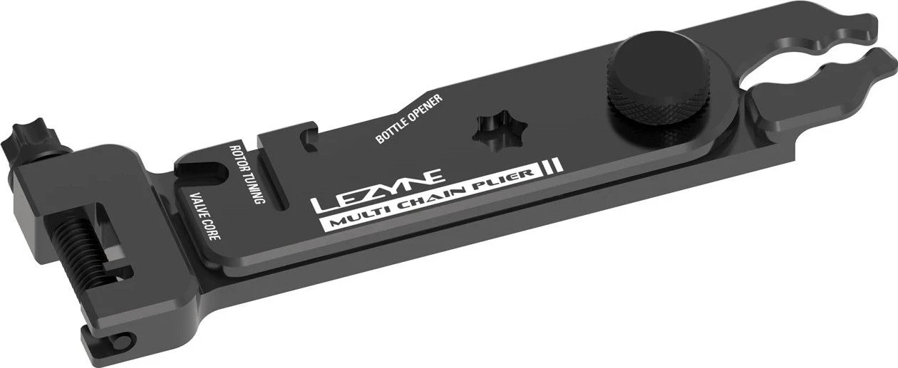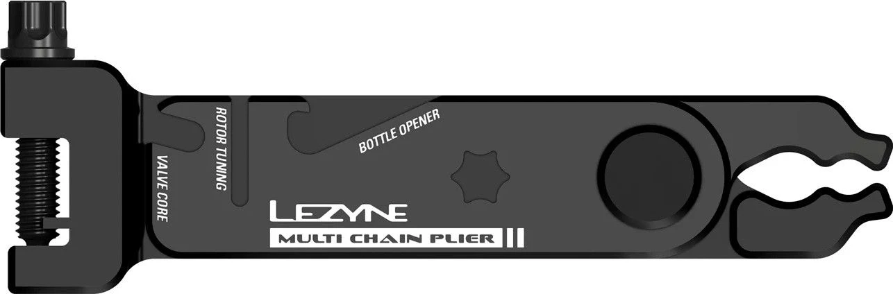 The Lezyne Multi Chain Pliers is a professional grade multi-tool designed for a variety of repairs. It has a quick coupler tool, chain tool, valve opening tool, bottle opener, disc revealer and magnetic quick coupler brackets.