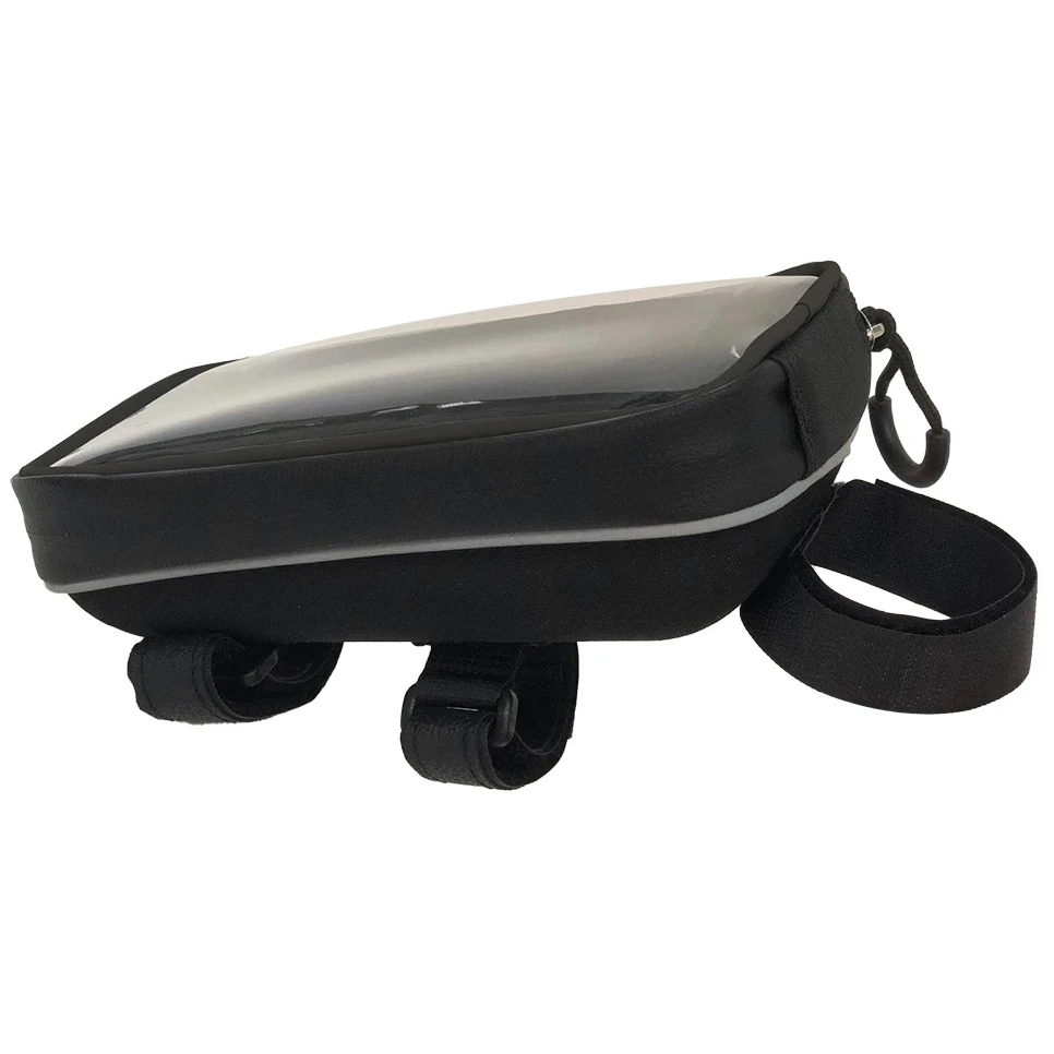The Smart Energy Caddy XL is an innovative bicycle top tube bag featuring a touch screen compatible smart phone holder and an additional 0.5-liter storage compartment. The phone holder is watertight with extra reinforcement for additional smart phone protection. It features removable straps exposing its integrated rivets, which makes it compatible with top tube mounting holes (compatible bike only, bolts not included).