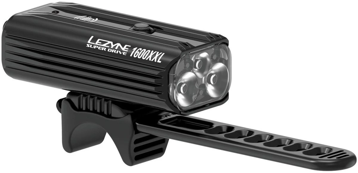 This high-powered bike light features three high-output LEDs for up to 1600 lumens of output. It has seven modes and our Tri-Focus Optics optimizes light output—this creates an ideal beam pattern for high speed. Machined aluminum construction features cooling fins and cutouts for side visibility. The Super Drive 1600XXL is both Smart Connect and Remote Switch compatible for additional ease of use. An Auto Day/Night Sensor automatically adjusts lumen output while in select modes. The light is micro-USB rechargeable and it can run for up to a massive 148 hours on a full charge. A versatile strap secures it to all common handlebar sizes